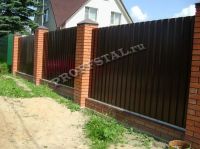Кирпичный забор с вставками из профнастила выглядит солидно, при этом более легко,чем полностью кирпичный забор .Такой забор хорошо скрывает участок и дом, ограждает от проникновения непрошенных гостей. Корзина пуста |